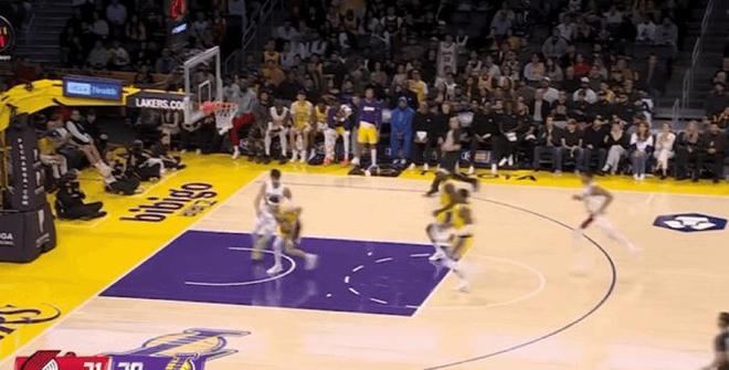 格蘭特成功上分,阿夫迪亞滑翔上籃,韋斯利不斷地沖擊籃筐進行反擊,而湖人以38-37分暫時領先。