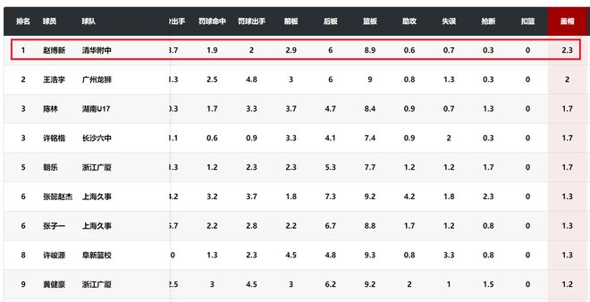 趙博新是一位實齡球員,他還有很大的成長空間。在這次的全國U17男籃聯賽,趙博新代表清華附中征戰比賽,他場均得到11.1分8.9籃板2.3蓋帽,在蓋帽榜上排名第一。