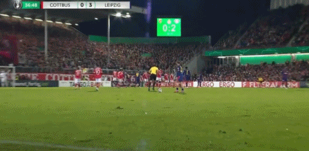 第28分鐘,勞姆角球開出,鮑姆加特納頭球破門,萊比錫2-0科特布斯