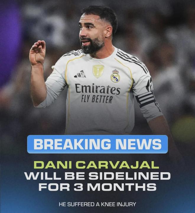 西甲方面同樣傳來球員受傷的消息,皇馬官方宣布,后衛卡瓦哈爾右膝受傷,將接受關節鏡手術,據悉預計缺陣2-3個月。
