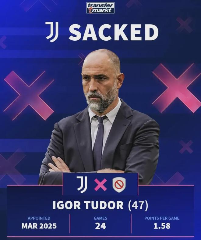 意甲方面同樣傳來主帥下課的消息,意甲豪門尤文圖斯官方宣布,球隊主帥圖多爾下課。