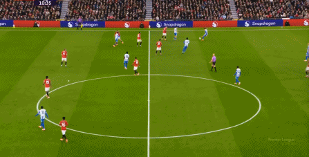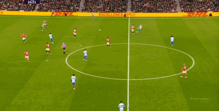 隨后就是在這個半扇當中,布萊頓連續出現了傳接上的運轉問題,這自然會讓主場作戰的曼聯看到進一步壓上的機會: