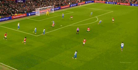 所以在開局階段,在曼聯還沒有進球之前,布萊頓就已經可以通過曼聯在某個局部的人盯人失敗,從而獲得非常好的機會: