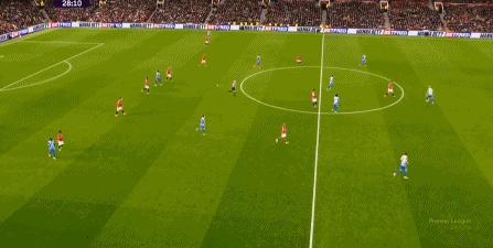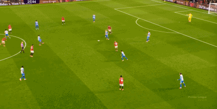 當布萊頓橫移到這一側的時候,約羅偏縮,導致阿瑪德-迪亞洛面對一防二的難題: